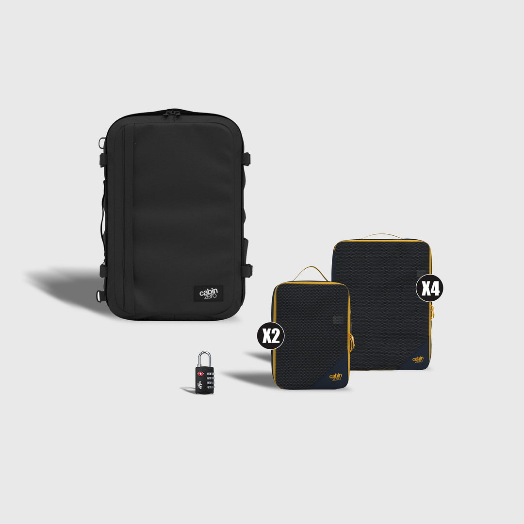 This is for the long hauls, the hiking trails, the multi-city trips where they are carrying everything for a fortnight. It comes with a max-capacity carry-on backpack plus handy extras for long-term travel. Many round-the-world travellers do indeed travel indefinitely with just a 40-45L carry-on.