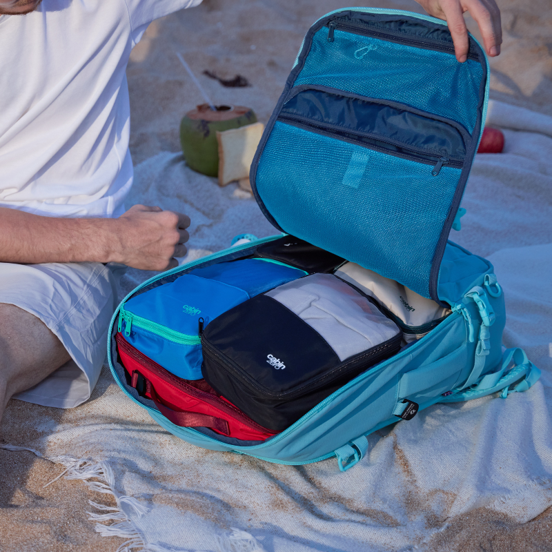 Compact, durable, and cabin-ready. The ADV in Kerala Green takes its cue from the lush forests of southern India. Light on your back yet tough enough for adventure. This standard maximum cabin backpack is made for quick escapes where freedom is the only plan. Available in 32L and 42L.
