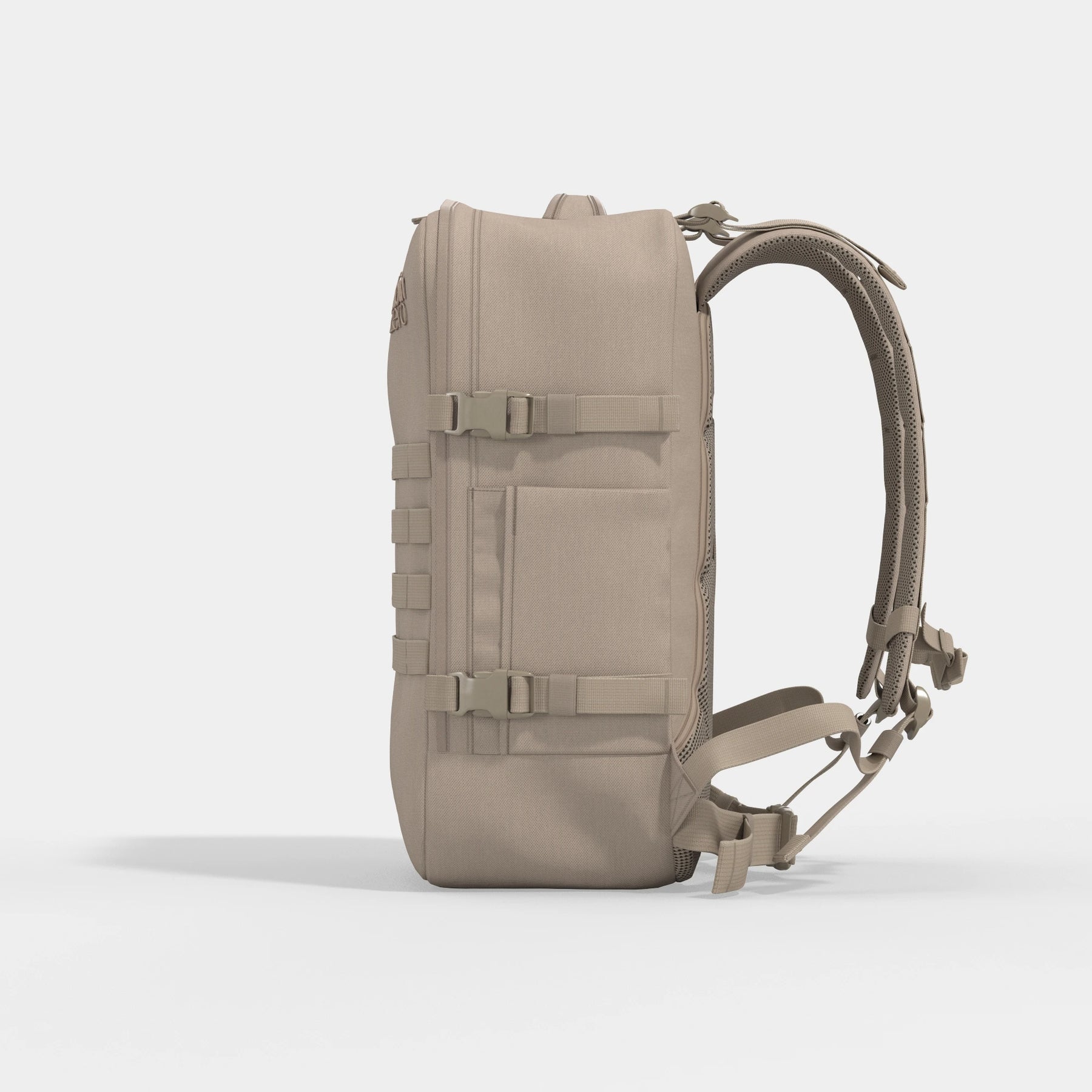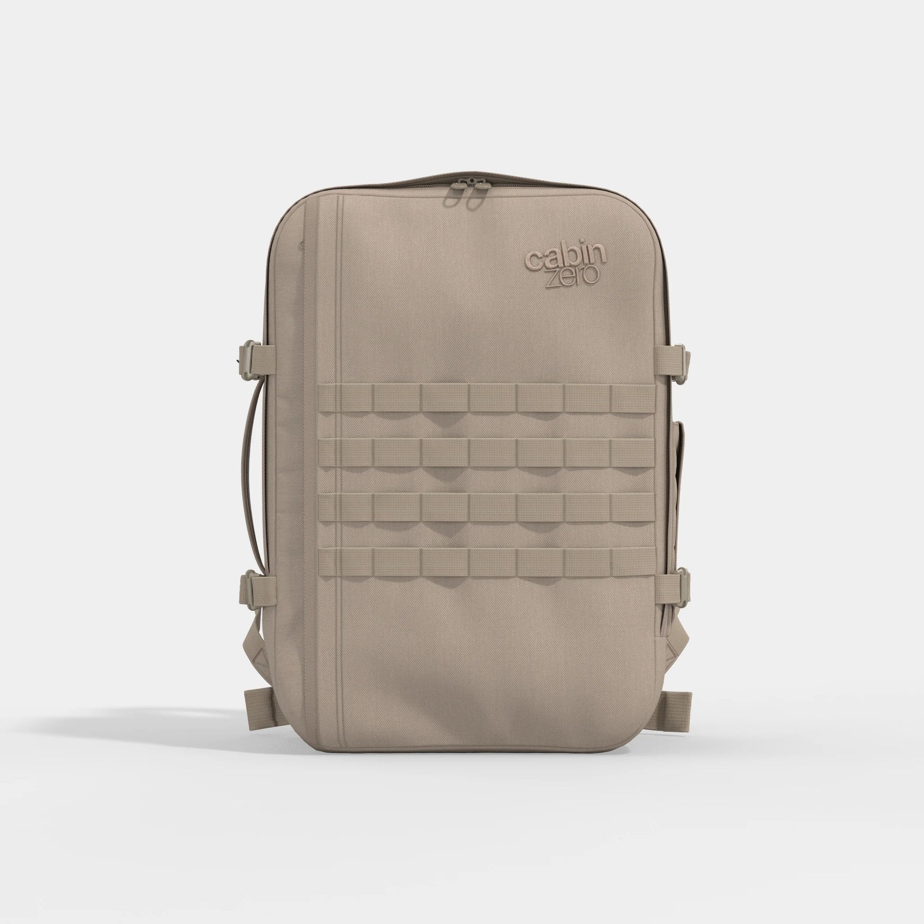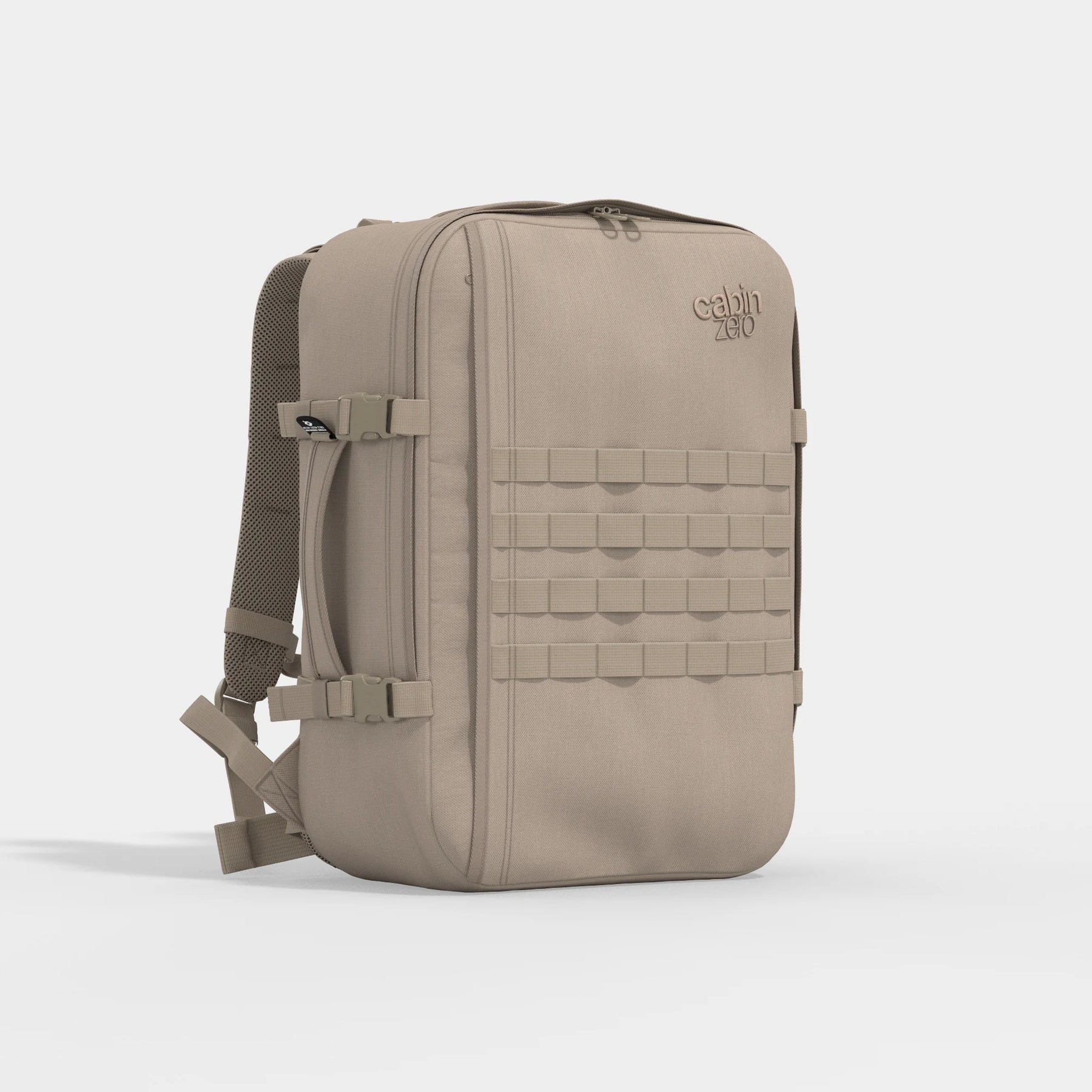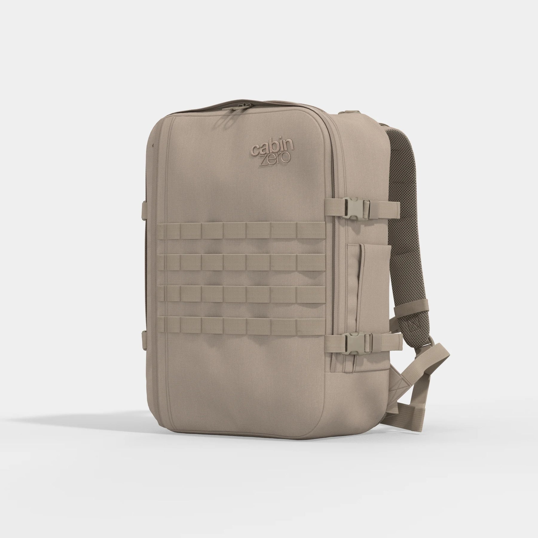 The Military backpack is the max-size carry-on built with grit in mind. Strong fabric, reinforced construction and a no-nonsense design to survive rough transport and hard miles. With ventilated padding, a chest belt, and a hip strap, it takes the weight off your shoulders where it counts.