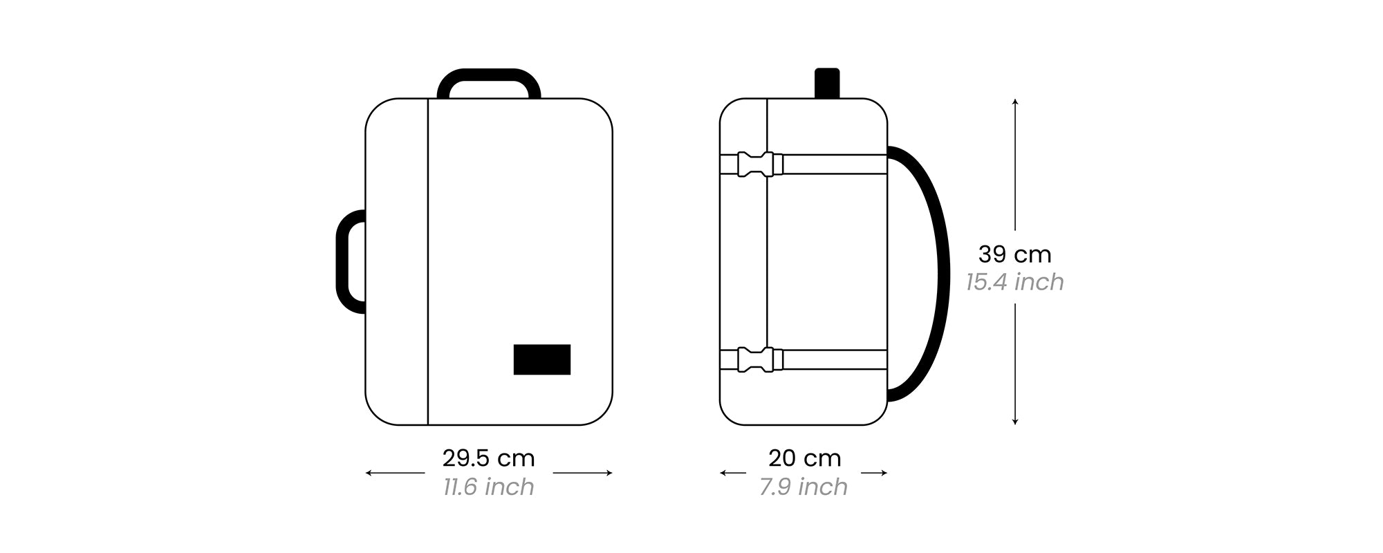 Ryanair | 40 x 20 x 25 cm | 15.75 x 7.87 x 9.84 in |