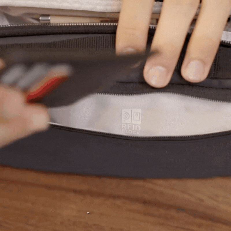 • Anti-theft back pocket with RFID blocking
