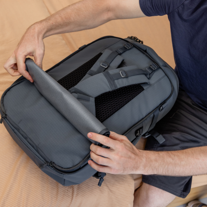 The ADV Pro in Original Grey is our maximum-sized carry-on with maximum comfort. It features a high-density aluminium and poly frame sheet, an EVA foam back panel with airflow channels, and a padded waist belt. Available in 32L and 42L.