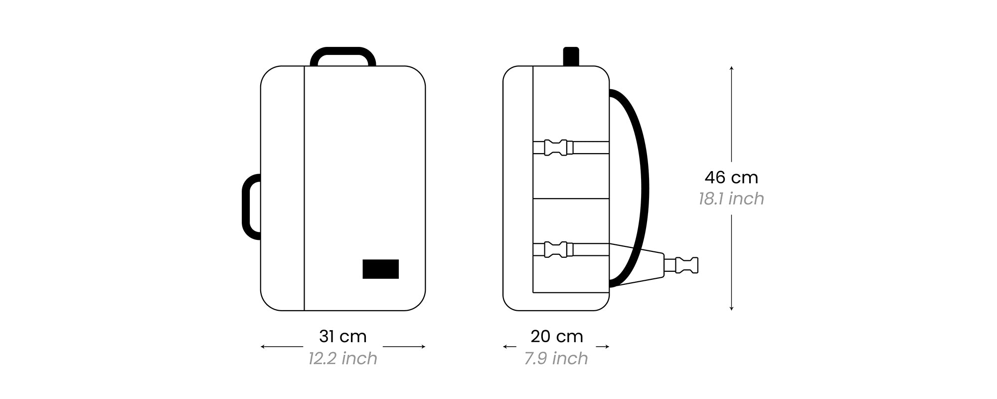 Ryanair | 55 x 40 x 20 cm | 22 x 16 x 8 in |